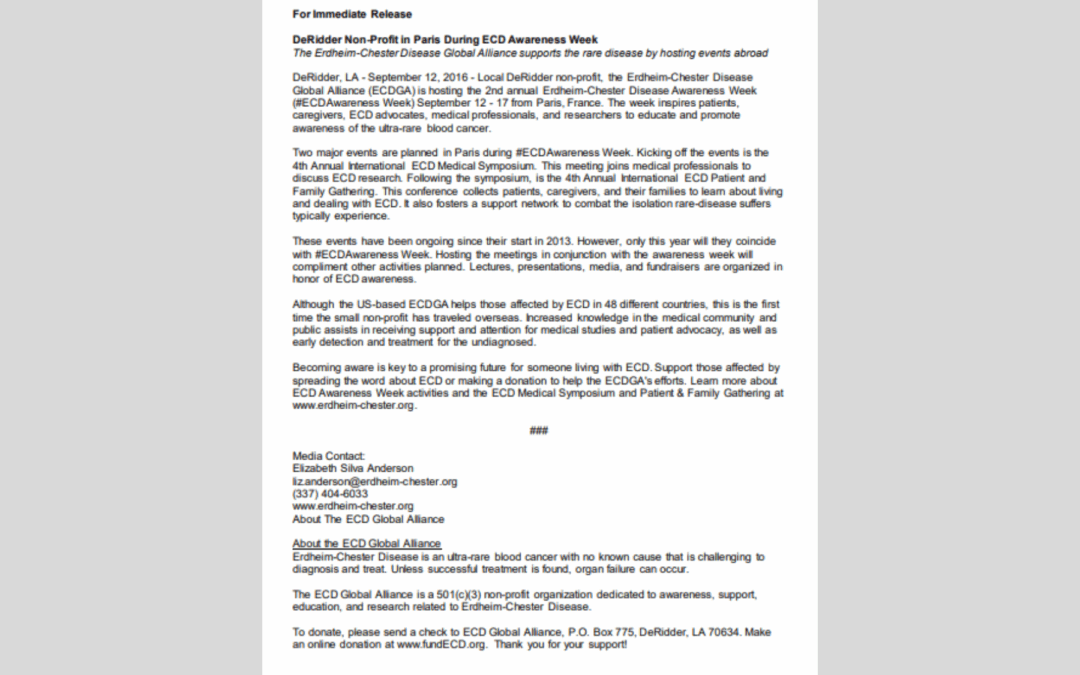 הברית הגלובלית למחלת Erdheim-Chester תומכת במחלה הנדירה על ידי אירוח אירועים בחו"ל.
