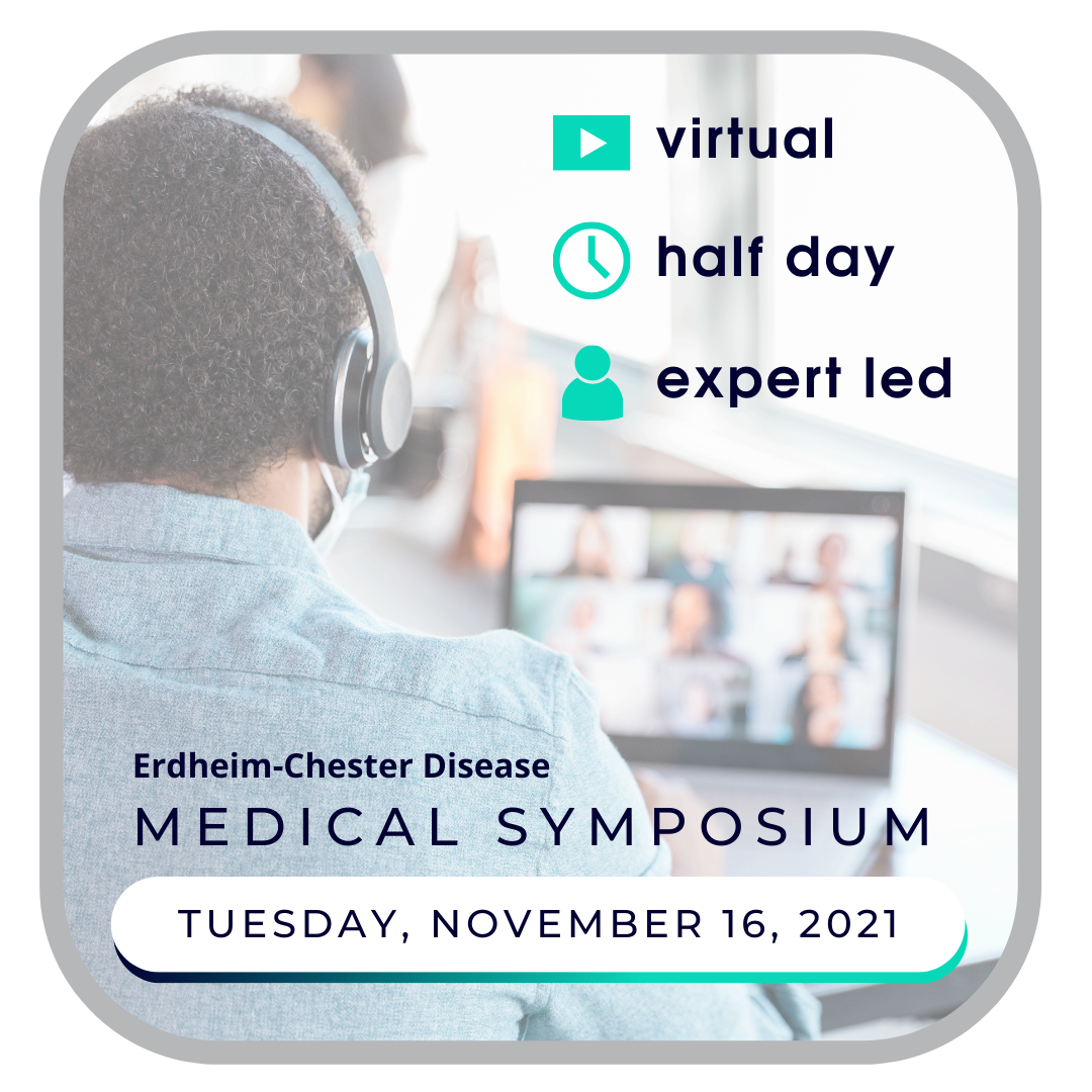 O Simpósio Médico Virtual 2021 Erdheim-Chester Disease Virtual Medical Symposium será realizado on-line das 9:00 às 14:15 CT (UTC -5) na terça-feira, 16 de novembro de 2021. Durante essa conferência, profissionais médicos de todo o mundo se reunirão para compartilhar descobertas científicas, resultados de pacientes e estudos de caso relacionados à Erdheim-Chester Doença de Kobe e outros distúrbios histiocíticos.