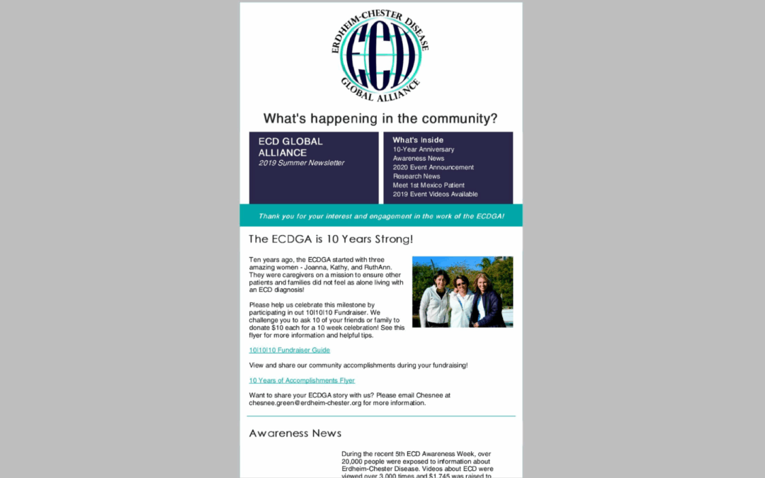 ECD A Global Alliance não fornece aconselhamento, diagnóstico ou tratamento médico.