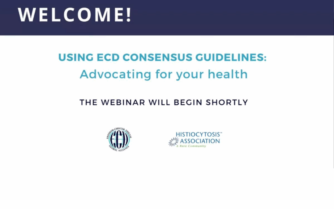 使用 ECD 共識建議:宣導您的健康 2 月 15, 2025 | 網路研討會錄像 舉辦了一場教育網路研討會,解釋了最新的埃爾德海姆-切斯特病 (ECD) 共識文件,並學習如何使用它來提供護理和付款人支援。 會議後回答的問題發佈 在這裡。 錄製於 2020 年 6 月